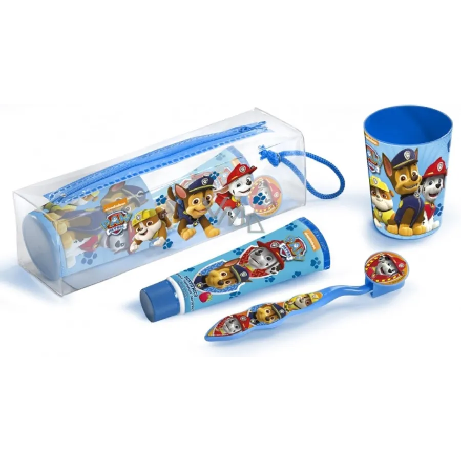 Este precioso pack dental pensado para los más pequeños de la casa es perfecto para que lo usen solitos y lo lleven a todas partes. Incluye un neceser para guardar un vaso, un tubo de pasta de dientes con Xylitol y Fluoruro Sódico que garantiza una limpieza profunda no abrasiva y un cepillo suave con capuchón protector para evitar que se ensucie. Cuatro elementos que consiguen una higiene bucal completa. Gracias al diseño divertido, el peque querrá lavarse los dientes acompañado de sus personajes favoritos. Disponible en dos modelos: Patrulla Canina y Mario Bros.