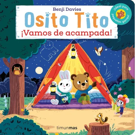 “Vamos de acampada” forma parte de la colección de éxito Osito Tito, y está especialmente diseñado para niños de 1 a 3 años. Su estructura en cartón resistente, sus colores vivos y los divertidos mecanismos deslizables captan la atención del bebé desde el primer momento.