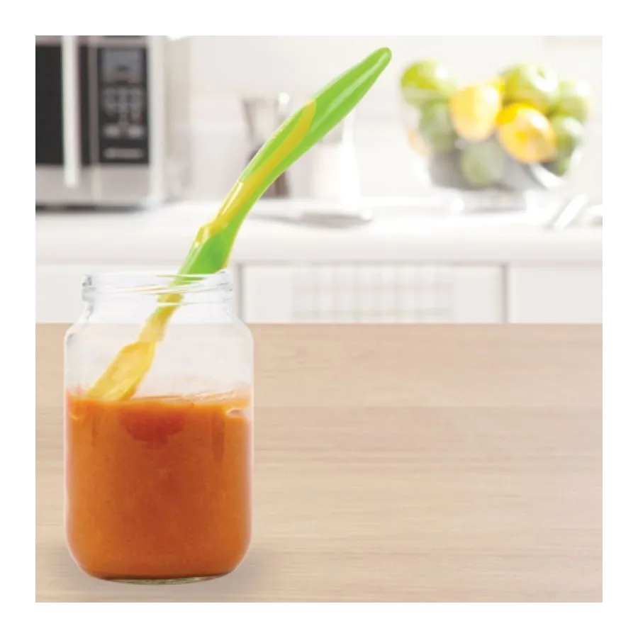Las cucharas infantiles de punta blanda de Munchkin han sido diseñadas especialmente para hacer más fáciles esas primeras comidas del bebé. Su punta blanda y su forma redondeada respetan las encías, y la paleta semiplana le pone más fácil el comer a su pequeño principiante. Las cucharas están hechas pensando también en los papás: tienen un mango muy cómodo de agarrar y son lo bastante largas para llegar al fondo de los potitos. Preparados, listos, ¡a comer sin problemas!