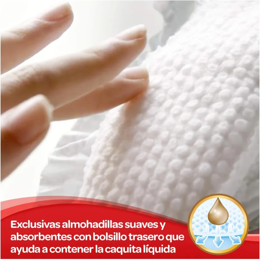 Además, principalmente durante los primeros meses, la piel de un bebé es muy delicada. Por eso, los pañales poseen suaves almohadillas que ayudan a mantener la piel del bebé siempre seca y a protegerlo con una suavidad extrema.