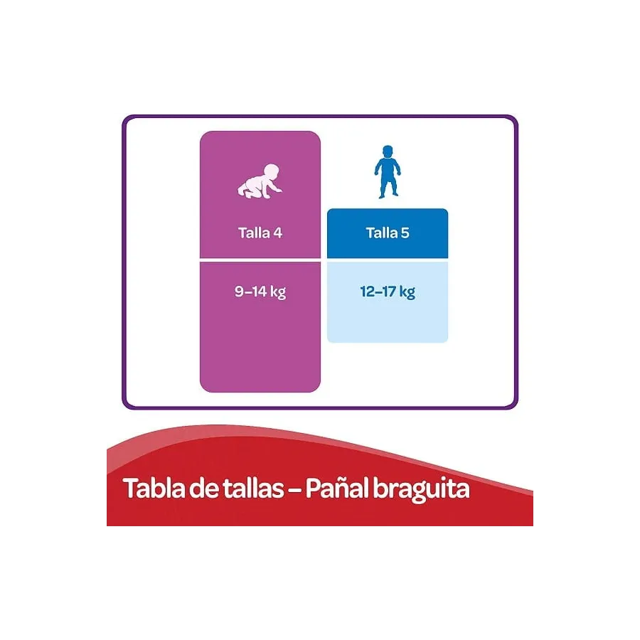 Pañal talla 5: desde 12kg hasta 17kg. Contiene: 34 pañales.