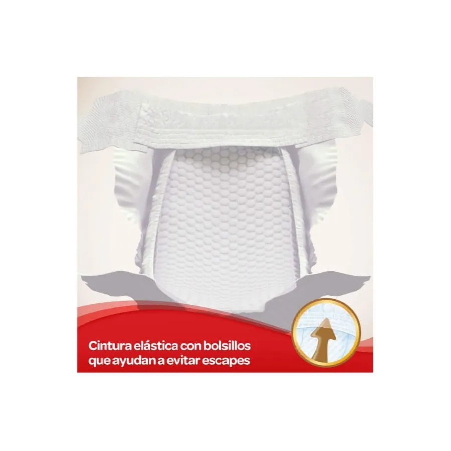 - Cintura elástica conbarrera extra que ayuda a evitar escapes y se adapta al cuerpo del bebé.