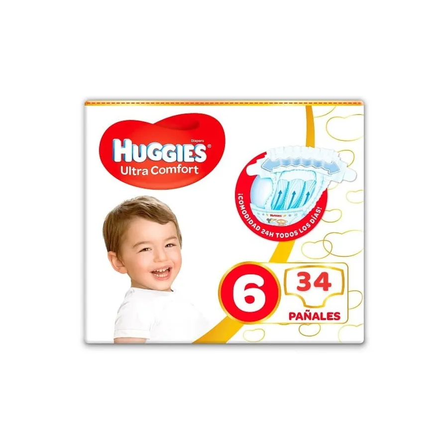 Pañales Huggies Ultra Confort Talla 6. Paquete de 34 Und