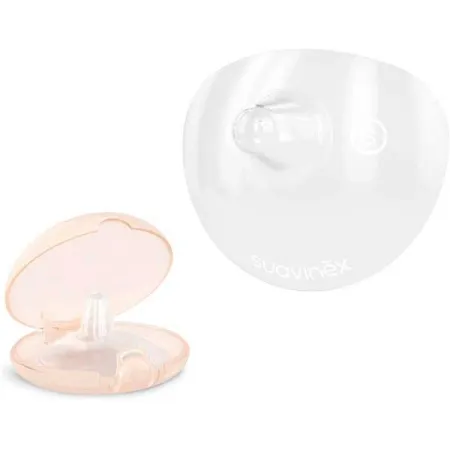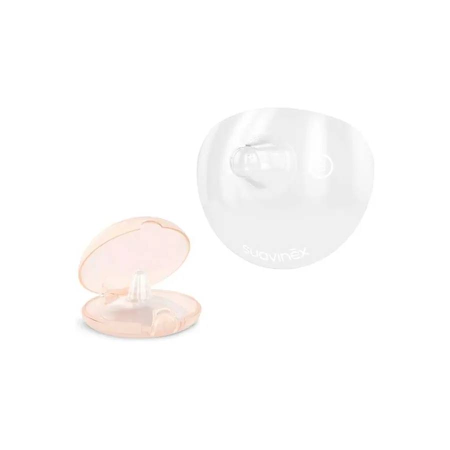 Te encantará este práctico y efectivo pack de dos unidades de pezoneras de Suavinex, que trae una cajita higiénica para transportarlas de forma cómoda. Están elaboradas en suave y fina silicona transparente las hace casi imperceptible para el bebé cuando mama, gracias a su forma permite que la nariz del recién nacido no choque contra ella al succionar. Son ideales para continuar con la lactancia pese a que tengas problemas de irritaciones, que te dificulte la lactancia.