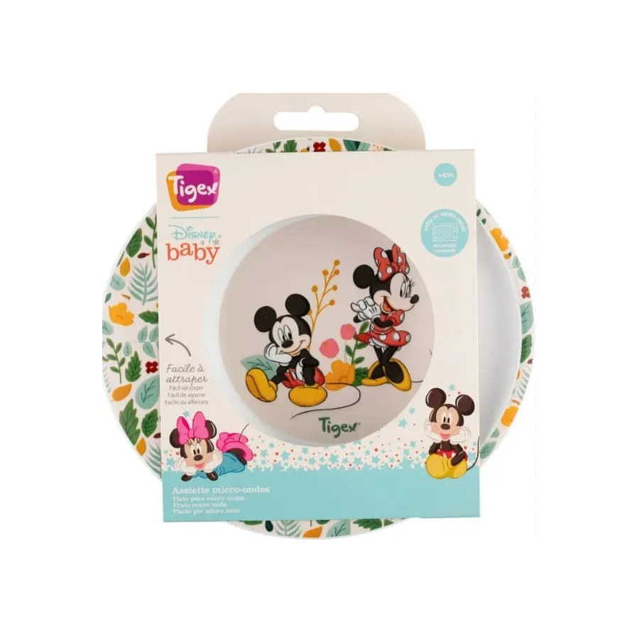El plato hondo Mickey y Minnie de Tigex es un plato de gran capacidad con motivos Disney especialmente diseñado para calentar la comida del bebé en el microondas. La capacidad y la calidad lo hacen útil por mucho tiempo. Los entrañables Mickey y Minnie se encuentran en el fondo del plato motivando al bebé a comer solito y a terminarse el plato para poder descubrirlos.