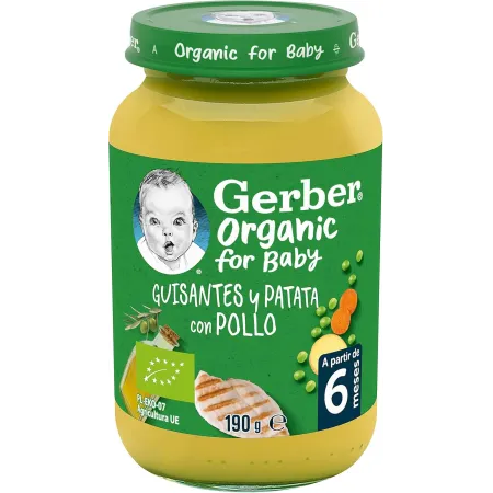 El Potito Organic Guisantes, Patata y Pollo de Gerber es una opción saludable y deliciosa para la alimentación de tu bebé. Este puré combina la suavidad de los guisantes, la cremosidad de la patata y la proteína del pollo, todo con ingredientes orgánicos seleccionados, brindando una comida equilibrada y nutritiva para los pequeños a partir de 6 meses.