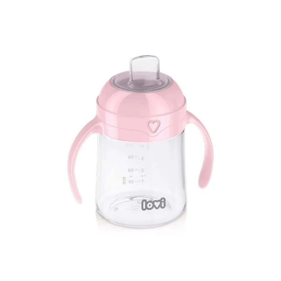 La primera taza con boquilla Lovi, gracias a la innovadora tetina con forma de chuchara, es la mejor opción para una transición del biberón o pecho al vaso segura y cómoda para el peque y para ti.