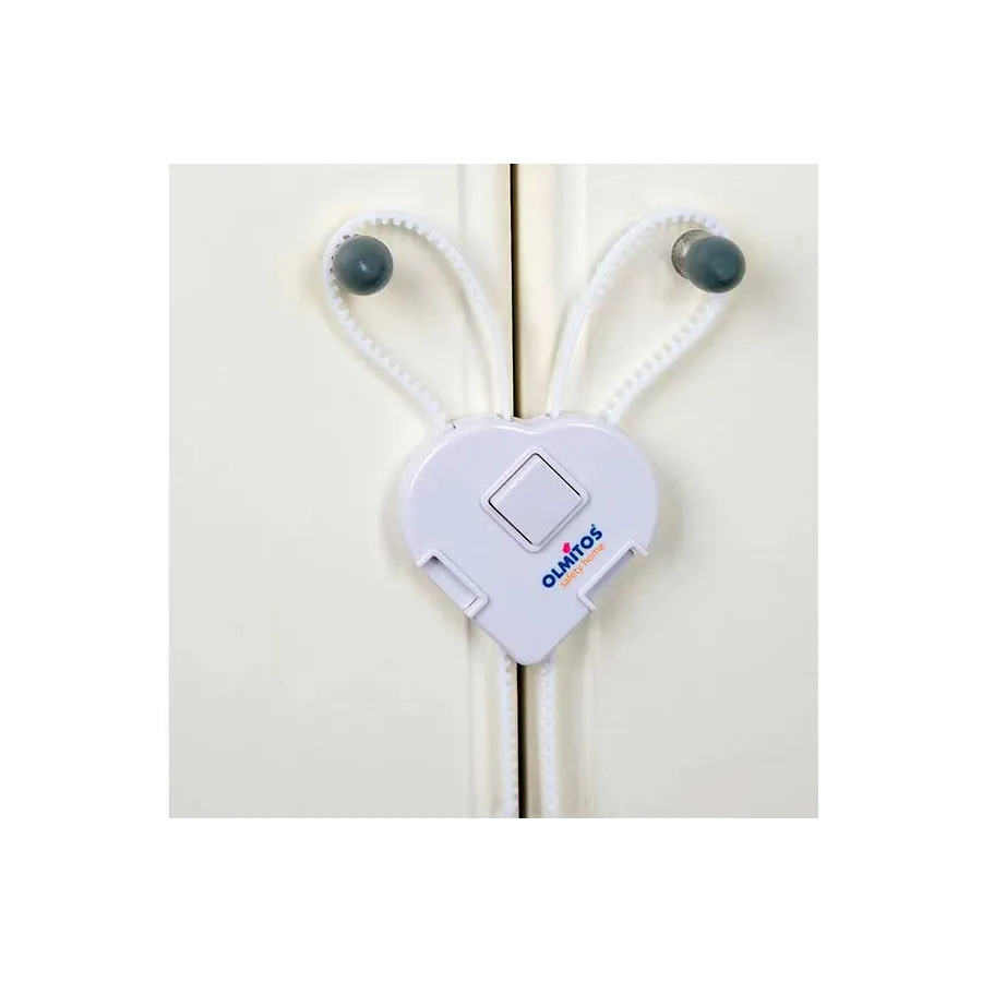 Protector flexible armarios de Olmitos es seguridad para el hogar. Los armarios situados bajo el fregadero de la cocina, o el cuarto de baño, son algunos ejemplos de los lugares en donde los niños pueden verse en apuros o lastimarse. Este sistema de bloqueo evita que los niños abran las puertas. No se necesita herramientas y es fácil de instalar y usar por adultos.
