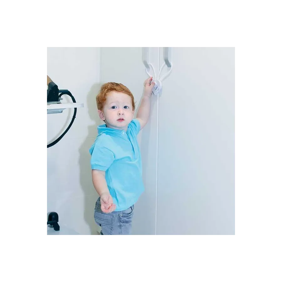 Protector flexible armarios de Olmitos sistema de bloqueo que evita que tu pequeña abra las puertas y pueda verse en apuros o lastimarse.