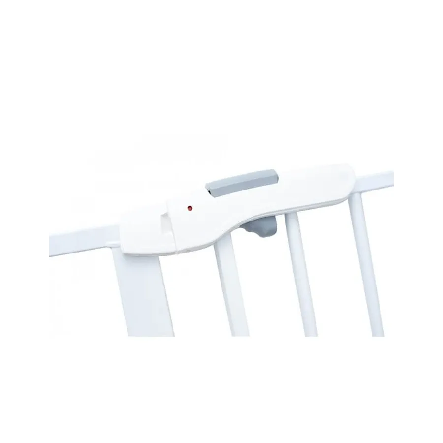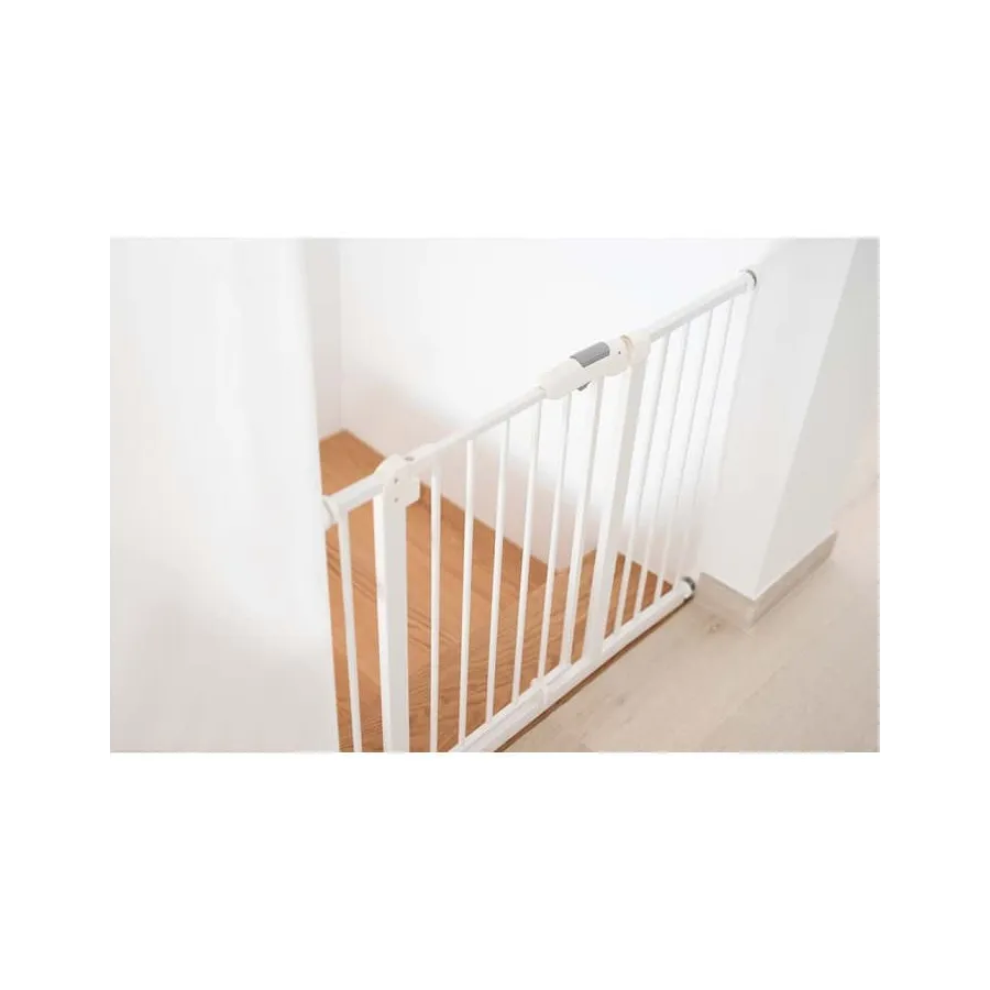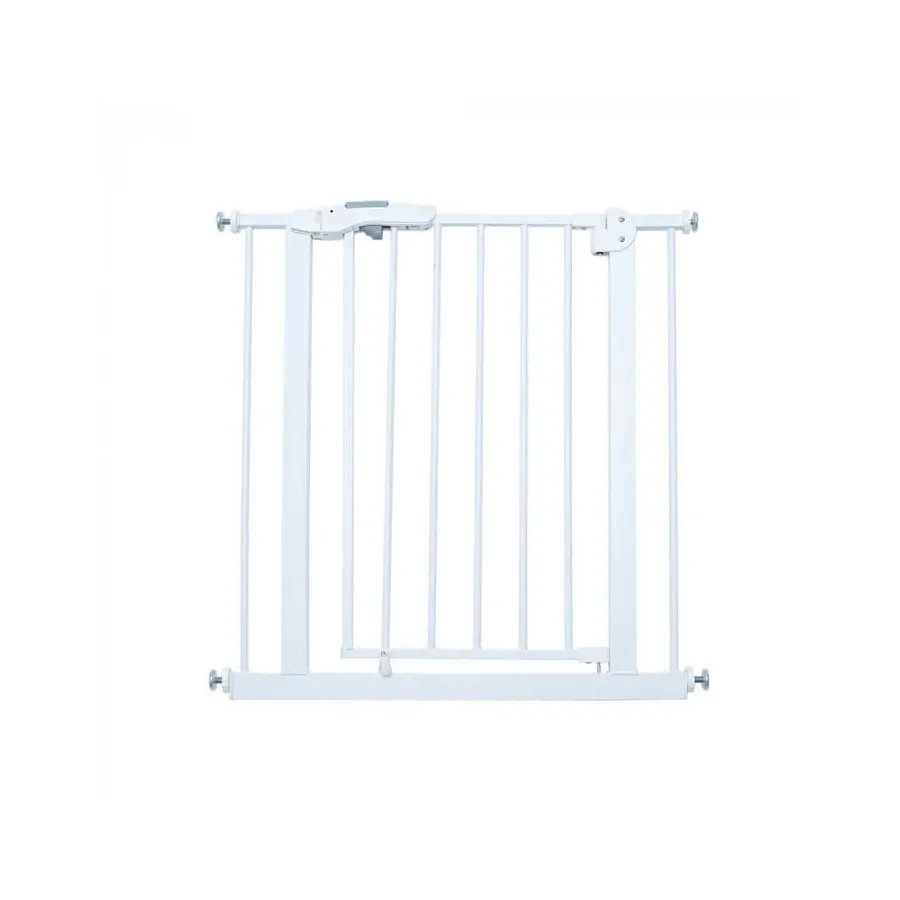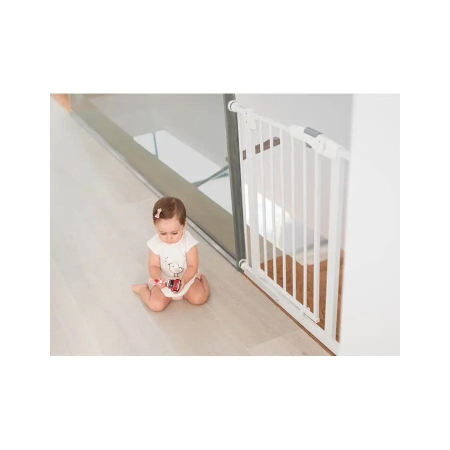 Es una barrera que se ajusta a puertas o huecos entre 75 y 80cm., muy fácil de instalar y con doble cierre de seguridad. Puede abrirse en dos direcciones como resulte más cómodo. Gracias a la altura y resistencia que ofrece el bebé puede ver lo que hay al otro lado y apoyarse pero sin cruzar, evitando la exposición a riesgos indeseados.