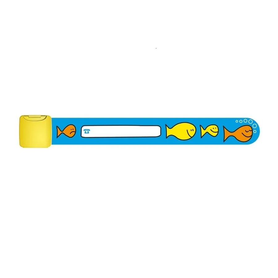 La Pulsera identificativa de Infoband es muy atractiva y suave, con diseños muy divertidos y coloridos. Además, la hebilla de seguridad tiene un sistema de apertura que no permite que los niños puedan abrirlo, o sea, que solo se puede abrir con las dos manos a la vez.