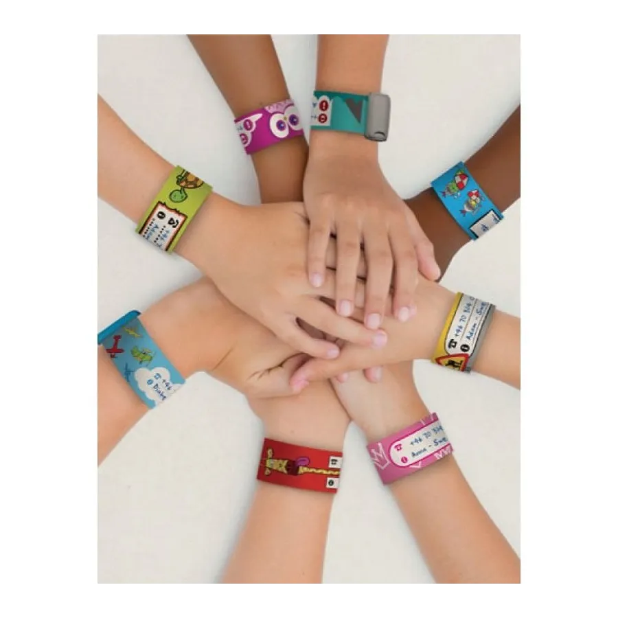 Son pulseras en las cuales los padres pueden escribir su nombre, el teléfono móvil, nacionalidad, alergias, enfermedades y otras informaciones importantes.