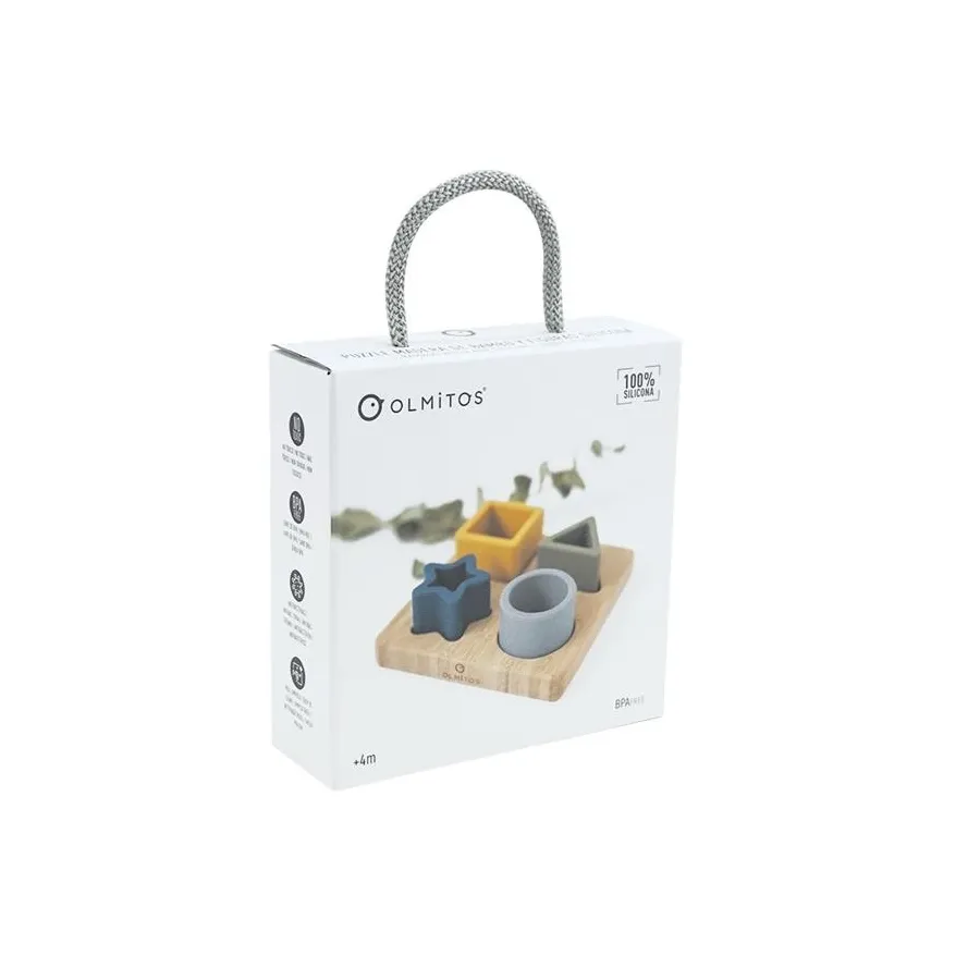 El puzzle madera bambú y figuras de silicona de Olmitos ha llegado a Más Pañales para lograr que los peques aprendan jugando. Gracias a su tamaño y diseño es perfecto para comenzar a distinguir las formas geométricas y los colores. El peque se lo pasará genial intentando encajarlas, apilarlas o lanzarlas. Cuenta con una base de madera de bambú suavizada y de bordes redondeados para evitar cualquier daño. Las piezas son grandes y mejoran la capacidad de agarre y la motricidad fina. Es un juego suave, flexible y de gran durabilidad, 100% seguro para los peques de 4 meses en adelante. Libre de BPA, BPS, ftalatos, PVC y plomo. Medidas: 11,9 x 11,9 x 3,7 cm (ancho x alto x fondo).