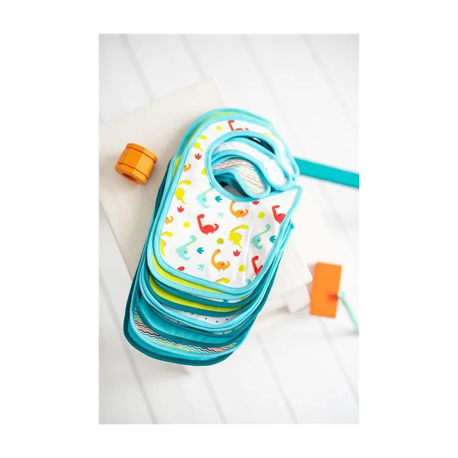 Preciosos Sets de 10 Baberos decorados con divertidos dibujos son super fáciles de utilizar y de limpiar. Compuesto de algodón con doble cara y parte trasera de rizo. Tiene un suave velcro para abrochar con delicadeza.