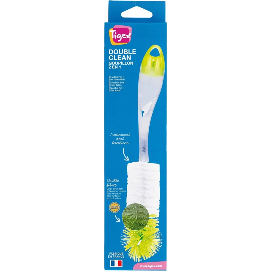 La escobilla 2 en 1 con fibras dobles de Tigex es una escobilla especialmente diseñada para la limpieza efectiva y fácil de biberones y tetinas. Cuenta con una escobilla de fibras dobles flexibles y resistentes que llegan fácilmente a todos los rincones eliminando eficazmente los restos de alimento.