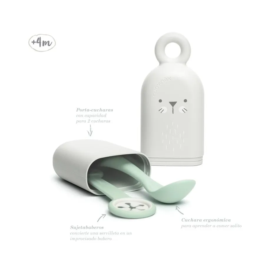 Tiene capacidad para dos cucharas y se puede personalizar. Está pensado para bebés de + 4meses y es apto para el lavavajillas.
