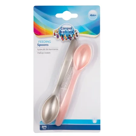 Este pack de 2 cucharas de iniciación de Canpol Babies ha sido especialmente diseñado para bebés curiosos de 4 meses en adelante. El material, libre de BPA es totalmente seguro para los más pequeños. Son super útiles y fáciles de limpiar ya que son aptas para el microondas y lavavajillas. Estas cucharas son perfectas para que tu peque empiece a comer solito. Cuentan con bordes suaves y redondeados que respetan las delicadas encías del bebé. Disponibles en dos colores: Rosa y Azul.