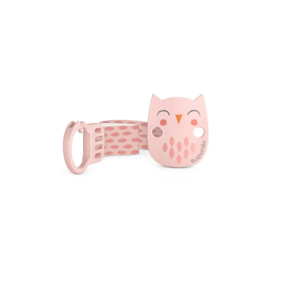 - Un broche pinza de tela con diseño reversible y pinza de búho que ayuda a tener el chupete siempre a mano y evitando que se pierda o se ensucie.