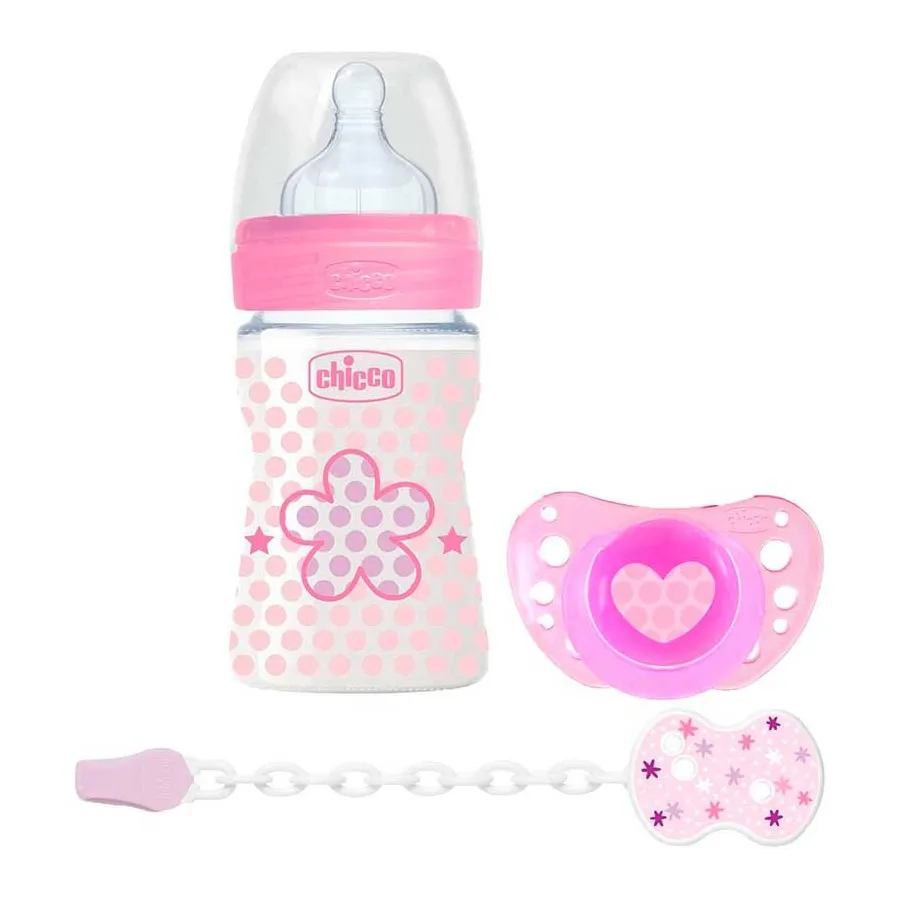 Este hermoso Set Regalo Wellbeing silicona 0m+ de Chicco es ideal para dar como regalo para un bebé recién nacido ya que está incluido un biberón Well-Being 150ml que ayuda a proteger el bebé de los cólicos, reflujos e irritaciones, un chupete Physio Compact apto desde 0 meses y un clip con cadenita para evitar que el chupete se caiga.