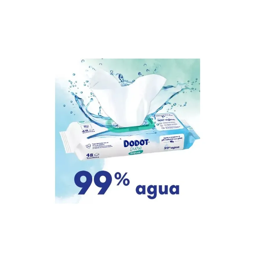 Toallitas Dodot Aqua Pure han sido elaboradas con 99% de agua para una limpieza delicada.