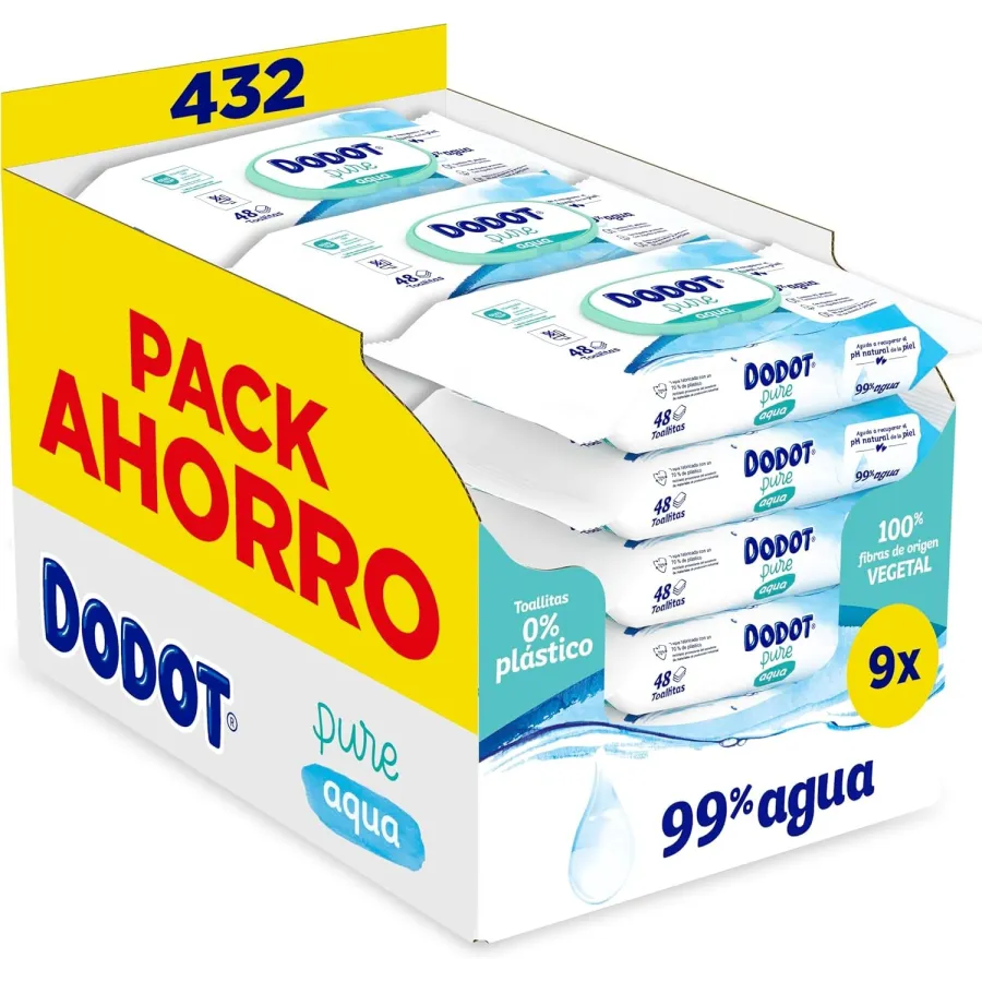 Toallitas Dodot Pure Aqua (9 paquetes de 48 Ud.) 432 Ud.
