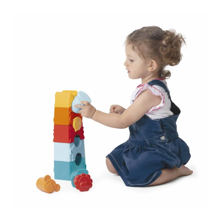Con sus coloridos animalitos apilables, este juguete está diseñado para fomentar la coordinación mano-ojo, la motricidad fina y la estimulación sensorial. A medida que el bebé encaja las piezas, desarrolla habilidades esenciales para su crecimiento.