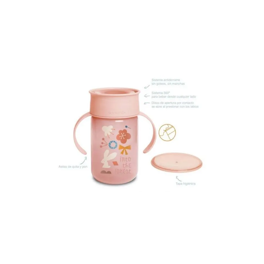 Diseñado para las manos más pequeñas el vaso 360 Forest de Suavinex es el mejor aliado para evitar los derrames y las manchas. La tecnología 360 permite utilizarlo en cualquier posición. Cuenta con una tapa protectora y asas ergonómicas.