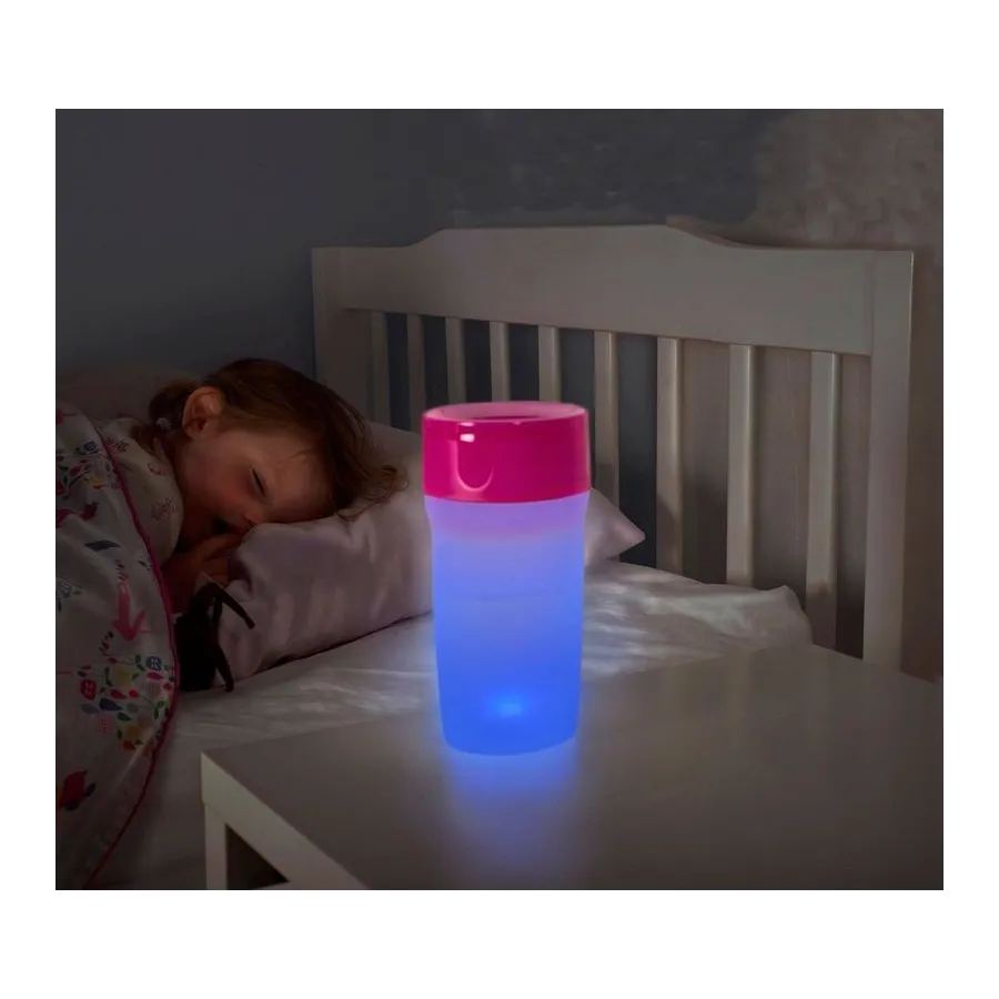 El Vaso regular con luz 330ml de Litecup es moderno e incluye una unidad de LED sensible a la luz que hace que la taza brille suavemente por la noche, de manera que los niños se sientan más cómodos y que encuentran fácilmente su botella.