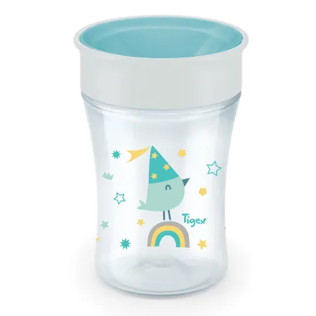 El vaso Smart 360º de Tigex favorece una transición más natural al vaso tradicional al no usar pajitas ni boquillas, reduciendo además el riesgo de caries. Es ideal para entrenar la musculatura oral de forma saludable y respetuosa.